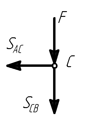3) усилия в стержнях направляют от узла, предполагая стержни растянутыми.