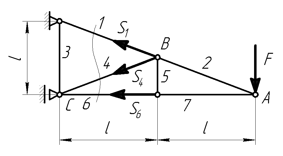 Определить усилие в стержне 6. Сила F = 360 Н.