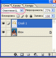 В палитре слоев перетащите слой тени под слой с девушкой (нажатой левой кнопкой мыши).