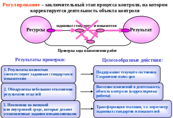 3. Проведение коррекции деятельности по результатам контроля, т.е. регулирование.