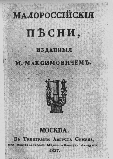 Таким само глибоким почуттям патріотизму перейняте перше видання ліричних народних пісень, підготовлене першим ректором Київського університету Михайлом Олександровичем Максимовичем під назвою «Малоросійські пісні» (1827), яке з часом дослідники назвали «золотою книгою