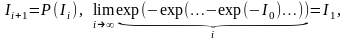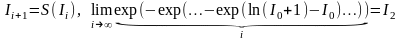 алгебралық теңдеуі (28) формулаға эквивалентті. М. Фейгенбаум орнатқан табиғи құбылыстардың әмбебап даму заңдылығының периодты екі еселенуінің бифуркациясын негізге алайық. Жүйенің даму деңгейінің иерархиялық күрделілігін ретіне n-ге сәйкестендіріп, = 2n деп қарастырайық. n = 0, = 1 жүйенің статикалық күйіне сәйкес келеді және (29)-дан I = S екені шығады. Динамикалық жүйенің бірінші иерархиялық даму деңгейі (n = 1, = 2) Фибоначчи (I3 = 0.618) санына тең сипаттамалардың пропорциясымен анықталады. Статикалық және динамикалық күйлердің (құрылымның және стохастиканың бастауы) арасында I1 саны арқылы сипатталатын жүйенің информациялық күйі жүзеге асады. =1.5 деп алып, (29)-дан I = 0.57 I1 болатындығын көреміз. Ли–Йорктің «үш период хаосты білдіреді» атты теоремасы бойынша n = 3 жағдай ішкі тәртібі бар ең күрделі статистикалық күйді I2 энтропия функциясының қозғалмайтын нүктесімен сипаттайды. = 23 = 8 үшін (29)-теңдеудің шешімі I = 0.811 I2 болып табылады.