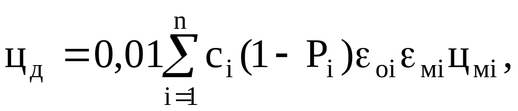В наиболее общем случае, когда руды цветных металлов многокомпонентны, содержат благородные и редкие металлы и эти руды можно разделить на несколько сортов, а при переработке добываемой рудной массы получаются несколько концентратов, извлекаемая ценность добываемой рудной массы применительно к условиям ГОКов цветной металлургии может быть определена по следующей формуле (руб/т)