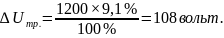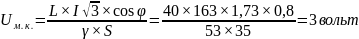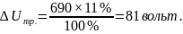 ∆U=1,5% от 6 кВ=90 В. – допустимое значение потери напряжения.