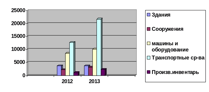 Для наглядности представим структуру основных производственных фондов ООО Логистический центр «Премьер-Транс» в динамике за 2012-2013 годы на рисунке 2.3.