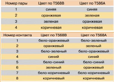 Аккуратно разведите, расплетите и выровняйте проводники. Выровняйте их в один ряд, при этом соблюдая цветовую маркировку. Существует два наиболее распространенных стандарта по разводке цветов по парам: T568A (рекомендуемый компанией Siemon) и T568B (рекомендуемый компанией AT&T и фактически наиболее часто применяемый).