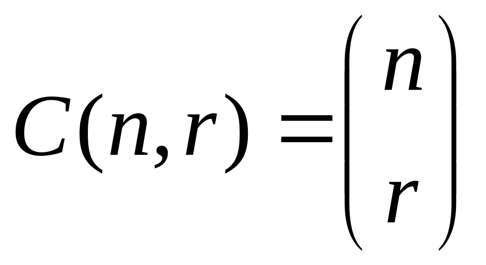 The number of r-combinations of a set with n distinct elements is denoted by C(n, r).