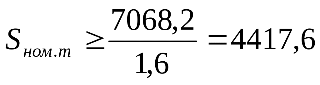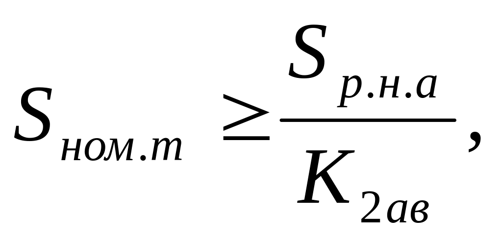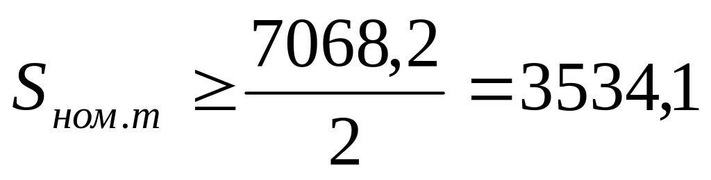 По першій умові мінімальна номінальна потужність трансформаторів ГПП не повинна бути менше половини повного навантаження підстанції