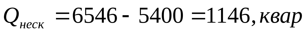 Якщо при установці високовольтних ККУ залишається недокомпенсированая реактивна потужність Qнеск, то її компенсують за допомогою додаткових низьковольтних ККУ. Величину недокомпенсированой реактивної потужності визначають по формулі