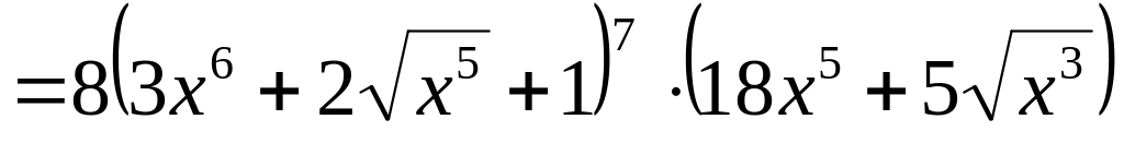 При решении всех последующих примеров на нахождение производных будут использованы известные правила дифференцирования суммы, разности, произведения, дроби и теорема о производной сложной функции:
