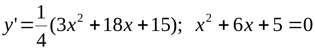 Решая полученное квадратное уравнение, делаем вывод о том, что функция имеет две критические точки 1 рода х1= - 5, х2= - 1. Разбиваем область определения этими точками на части и по изменению знака производной в них выявляем промежутки монотонности и наличие экстремума: