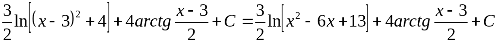 x2 – 6x+13 = x2 – 6x + 9 + 4 = (x - 3)2 + 22. Тогда после подстановки t = x - 3 получаем