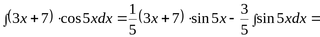 u = 3x+7, dv = cos5xdx,