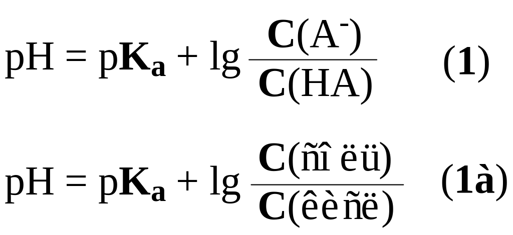 А в общем виде для систем первого типа HA/A- величина pH определяется по уравнениям 1 или 1а.