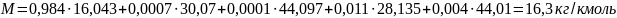 Молярную массу природного газа M, кг/кмоль, вычисляем на основе компонентного состава по формуле: