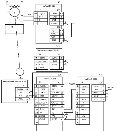 Сприклад схеми підключення датчиків до модулів ADAM фірми Advantech