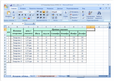 2.1 Структура электронных таблиц