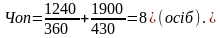 За даними табл. 41 Міжгалузевих нормативів визначення чисельності працівників маємо: Нн.о1=360 осіб; Нн.о2 =430 осіб;