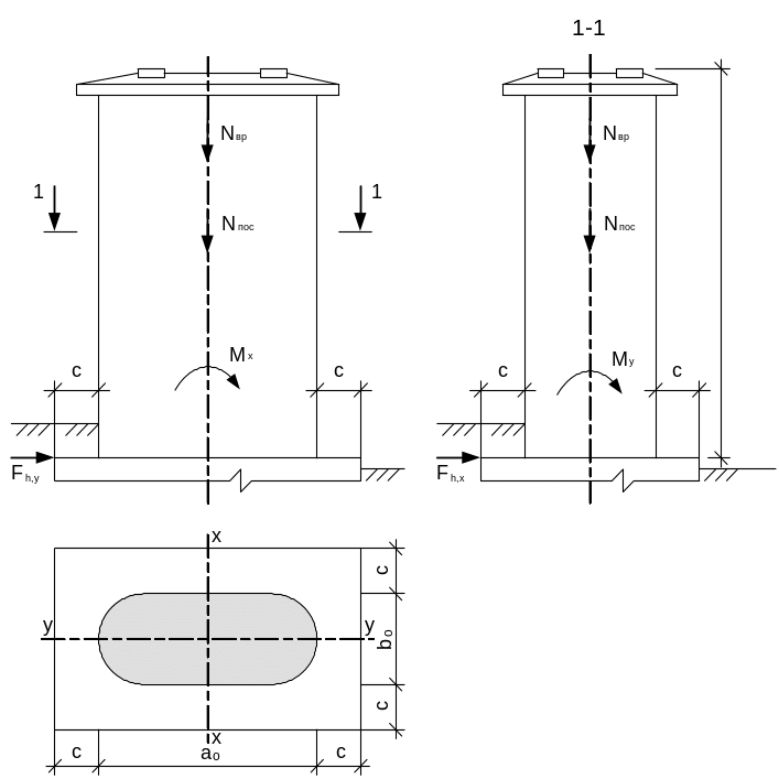Нормативные нагрузки на опору представлены в табл. 1.2.