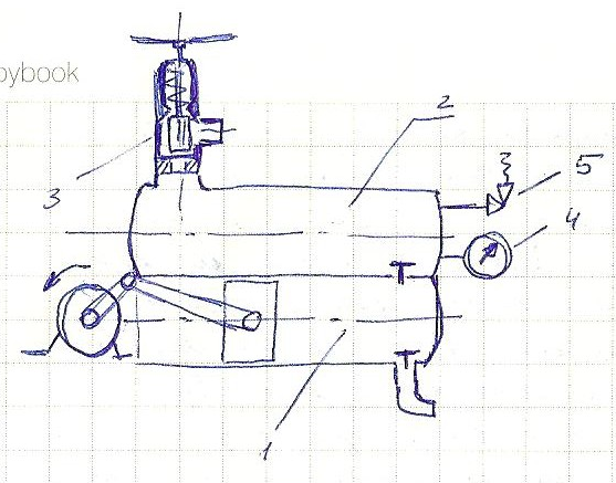 1-поршневой насос, 2-камера выравнивания давления, 3-гомогенизирующая головка, 4-монометр, 5-предохранительный клапан. Задача: снизить вязкость, улучшить текучесть.