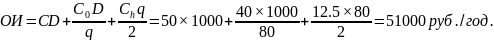 Стоимость хранения одной единицы Ch = 0,25С = 0,2550 = 12,5 рублей за единицу.