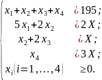 Обозначим через Х число требуемых комплектов. Тогда условия задачи можно отобразить в виде следующей таблицы: