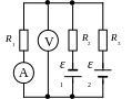 Рассчитать электрическую схему и определить показания приборов. Электрические схемы представлены на рис. 2.3.1– 2.3.20. Исходные данные вариантов указаны в табл. 1.
