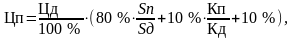 де Цп — ціна поставки; Цд — ціна, передбачена договором; Sп — вартість шкірматеріалів на день поставки; Sд — вартість шкірматеріалів на день підписання договору; Кп — зарплата на день поставки; Кд — зарплата на день підписання договору.