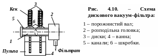 На збагачувальних фабриках великої продуктивності для фільтрування тонкоподрібнених рудних концентратів крупністю до 0,2 мм і вугільних – крупністю до 0,5 мм використовують дискові вакуум-фільтри (рис. 4.10). На дискових вакуум-фільтрах здійснюється фільтрування вугільних та багатьох рудних флотаційних концентратів.