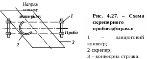 Скреперні пробовідбирачі (рис. 4.27) призначені для відбору проб матеріалу крупністю до 300 мм і вологістю до 14 % безпосередньо зі стрічкових конвеєрів.