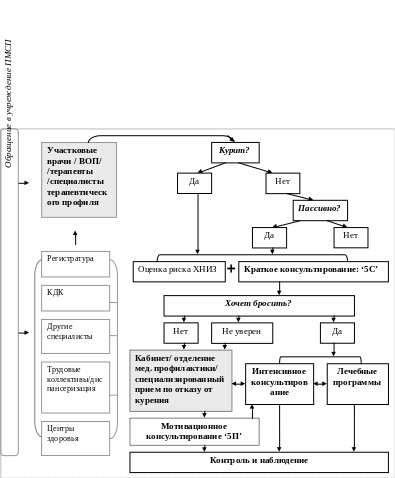 - •Алгоритм организации медицинской помощи по профилактике и прекращению потребления табака в учреждениях пмсп