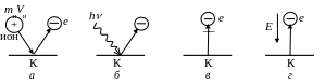 б) облучения катода ультрафиолетовым светом, рентгеновским или более коротковолновым излучением (фотоэмиссия) (рис. 1.3, б);