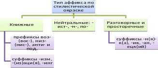 К стилистически окрашенным морфемам ученые относят: а) морфемы, закрепленные за определенным стилем языка, б) морфемы, обладающие той или иной эмоционально-оценочной стилистической окраской (высокой, сниженной, пренебрежительной и др.)