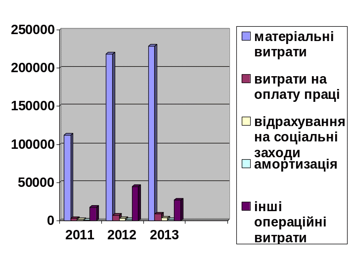 Провівши аналіз, можна зробити висновок, що питома вага витрат на оплату праці у складі елементів операційних витрат в 2012 році зросла на 0,3 % або на 3847 тис.грн у порівнянні з 2011 роком.