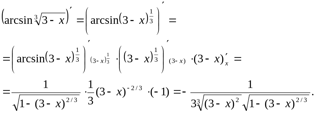 Находим производные каждого из множителей, пользуясь формулой (2) для дифференцирования сложных функций.