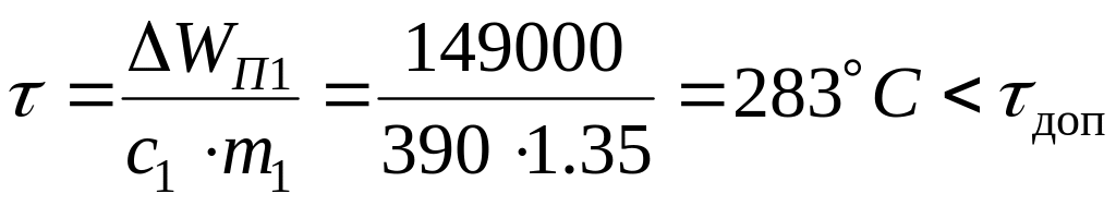 По тепловому состоянию обмотки статора, при её массе m1 = 2,8 кг, нагрев составит: