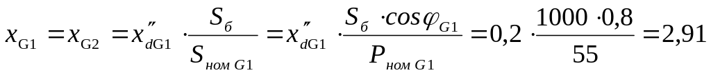Рисунок 11 – Схема замещения, для расчета тока трехфазного короткого замыкания методом “расчетных кривых”