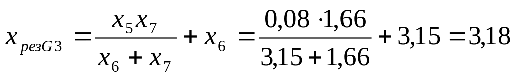 Источники с ЭДС ЕG3, Ен заменяем эквивалентным источником ЭДС Е1, с сопротивлением х9: