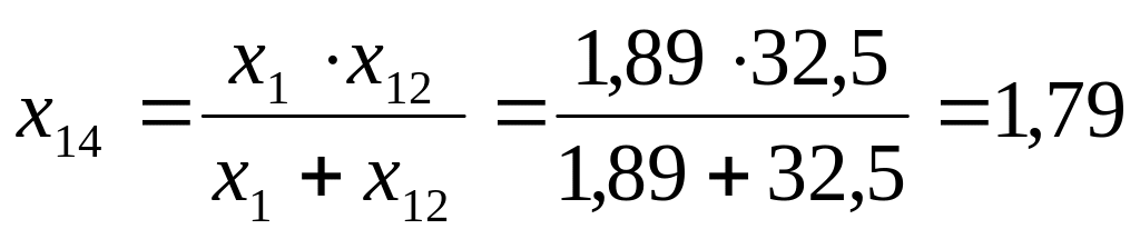 Источники с ЭДС ЕG1, ЕН заменяем источником ЭДС Е2, с сопротивлением х14: