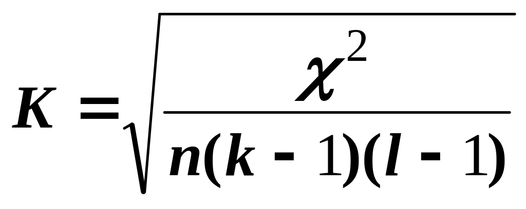 Коефіцієнт взаємної спряженості для двох змінних, які вимірюються за номінальною шкалою, називається коефіцієнтом контингенції та розраховується за формулою: