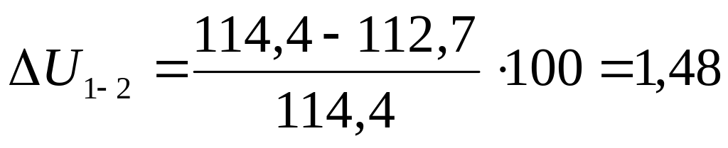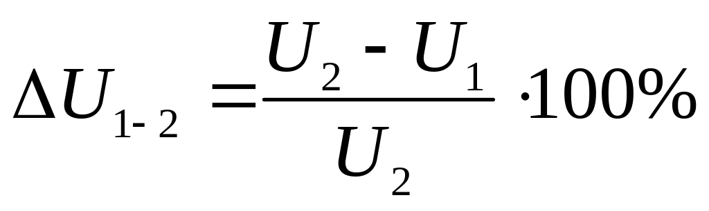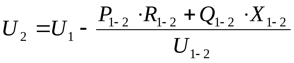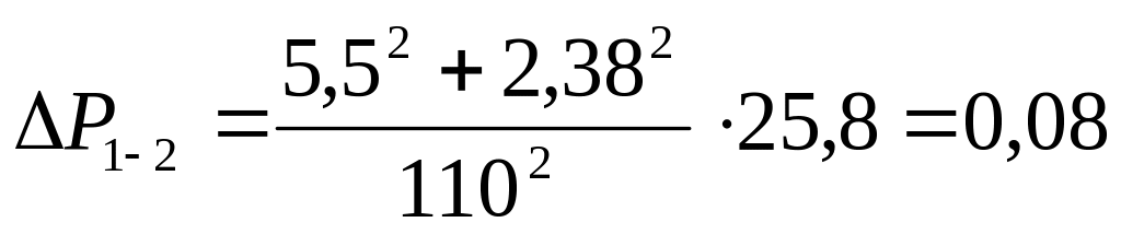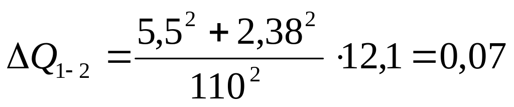Определяем потери напряжения ∆U1-2 , %, на втором участке сети по формуле