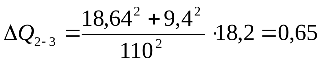 Определяем потери активной ∆Р, МВт, и реактивной мощности ∆Q, МВ·Ар на каждом участке сети по формулам (37,38)