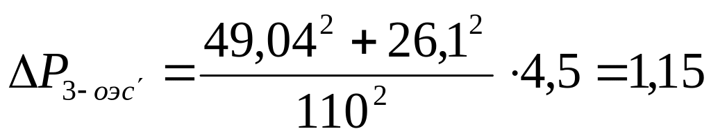 Определяем потери напряжения ∆UОЭС’-3 , %, на четвёртом участке сети по формуле