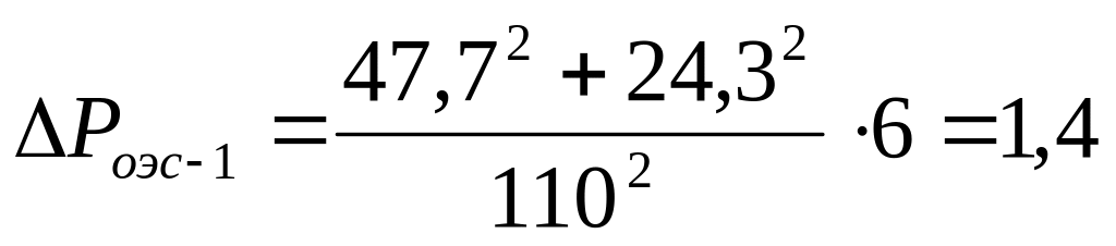Определяем потери напряжения ∆UОЭС-1 , %, на первом участке сети по формуле