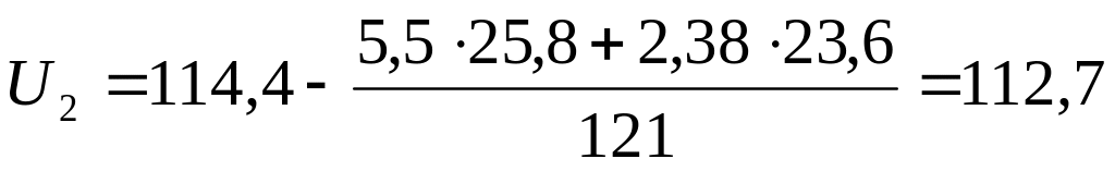 Определяем напряжение U2 , кВ, на второй подстанции по формуле