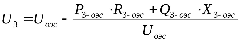 Определяем напряжение U3 , кВ, на третьей подстанции по формуле