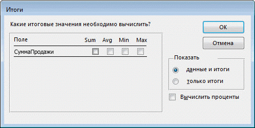 Нажмите кнопку Итоги, если вам нужно вычислить итоговые значения числовых полей.