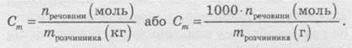 Моляльність розчину (Сm або m) — це величина, що дорівнює відношенню кількості розчиненої речовини до маси розчинника, вираженої в кілограмах.
