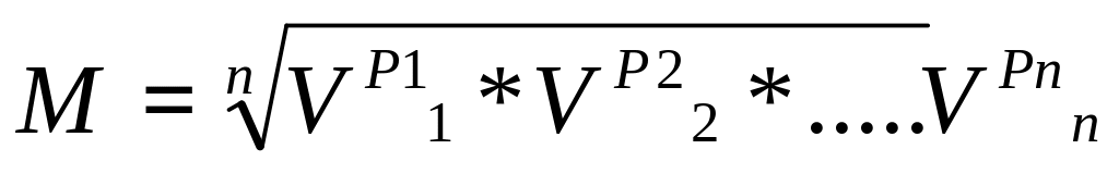 Среднее геометрическое - вычисляется в тех случаях, когда дело имеют с числовым рядом, отдельные значения в котором распределяются в геометрической профессии (резко отличаются друг от друга). Наиболее целесообразно вычисление этого показателя при определении среднего во временных рядах распределения. В целом, если при вычислении среднего арифметического подходят к рядам распределения с точки зрения разности между величинами, то при вычислении среднего геометрического подходят с точки зрения соотношения величин. Например: имеется два числа 4 и 16. Среднее арифметическое из них равняется 10, т.е. 10 больше 4 на столько же, на сколько 10 меньше 16. Среднее геометрическое из этих чисел равно 8. Число 8 в два раза меньше 16 и в два раза больше 4.