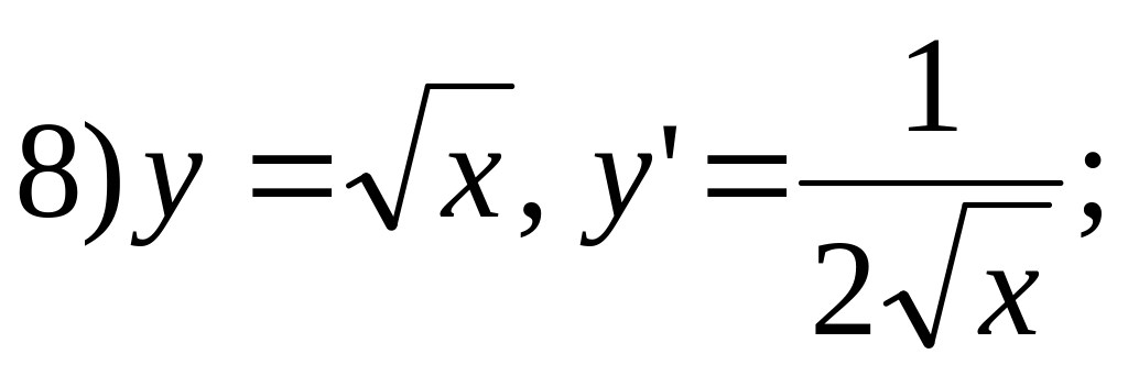 1). У = С, у’= 0; 2). У = х, у’ = 1; 3). У = f(x) + g(x), y’ = f ’ + g ’ ;